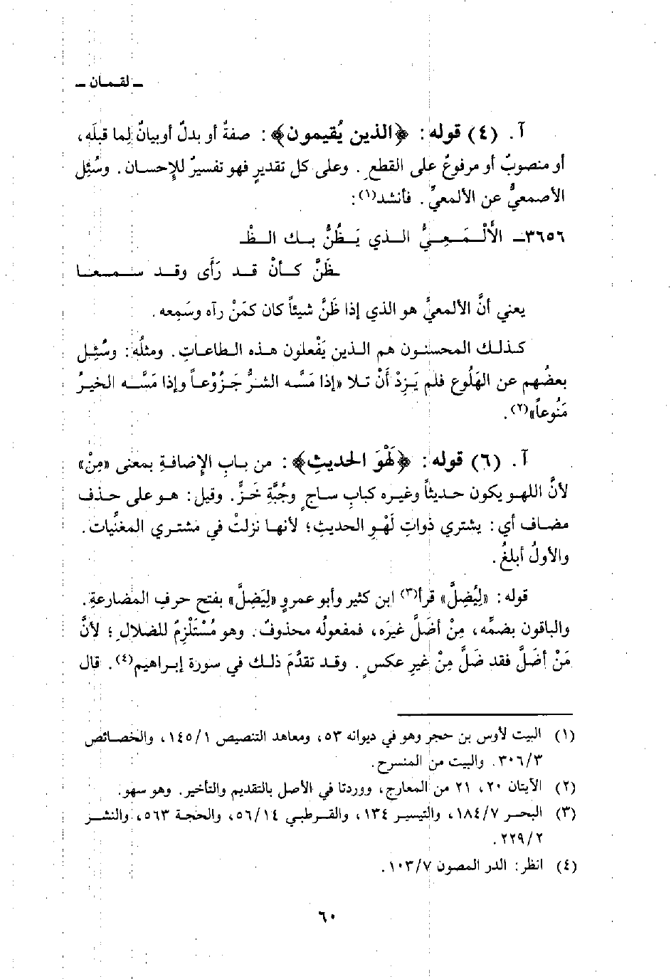 كذلك المحسنون هم الذين يَفْعلون هذه الطاعاتِ. ومثلُه: وسُئِل بعضُهم عن الهَلُوع فلم يَزِدْ أَنْ تلا {إِذَا مَسَّهُ الشر جَزُوعاً وَإِذَا مَسَّهُ الخير مَنُوعاً} [المعارج: 20، 21] .