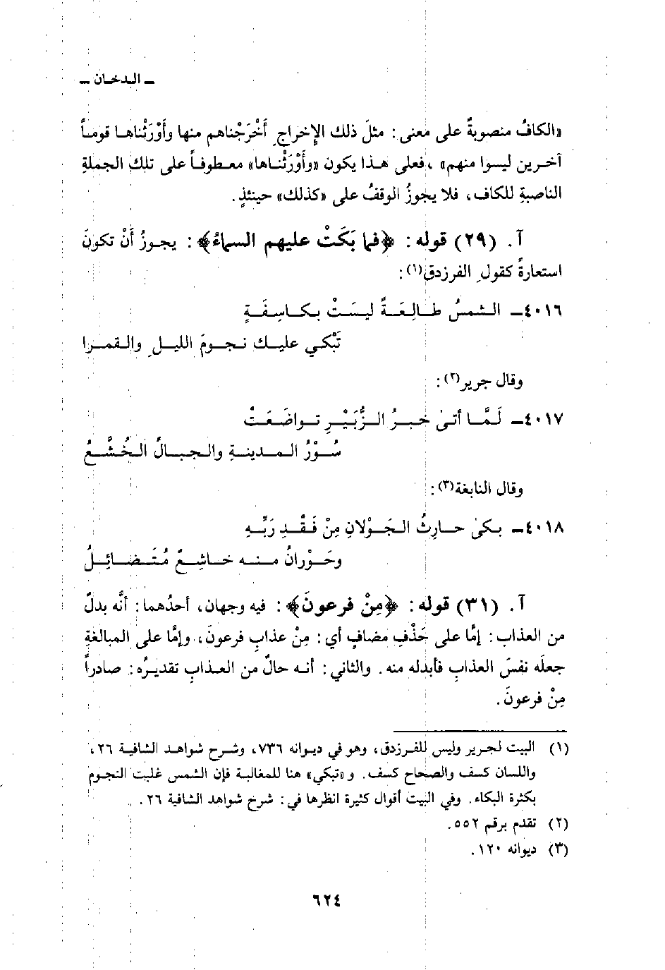 قوله: {فَمَا بَكَتْ عَلَيْهِمُ السمآء} : يجوزُ أَنْ تكونَ استعارةً كقولِ الفرزدق: