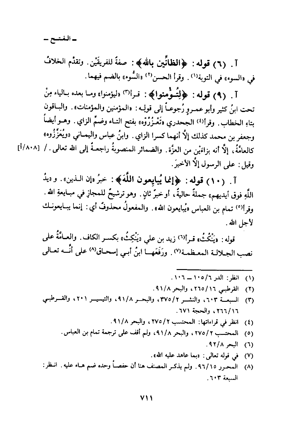 قوله: {الظآنين بالله} : صفةٌ للفريقَيْن. وتقدَّم الخلافُ في «السوء» في التوبة. وقرأ الحسن «السُّوء» بالضم فيهما.