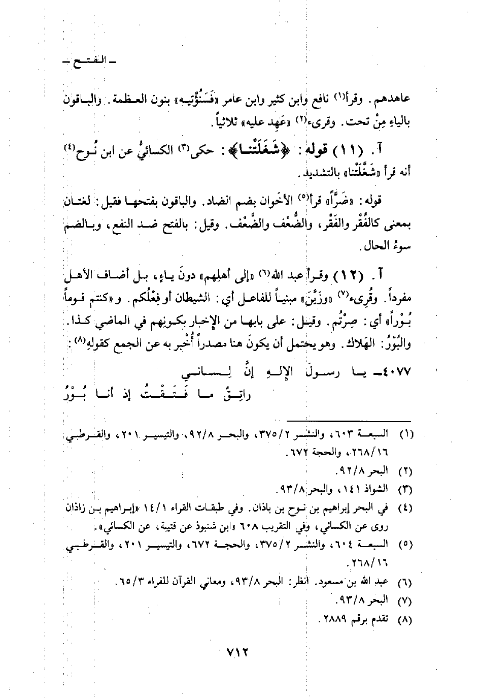 وقرأ عبد الله «إلى أهلِهم» دونَ ياءٍ، بل أضاف الأهل مفرداً. وقُرِئ «وزَيَّنَ» مبنياً للفاعل أي: الشيطان أو فِعْلُكم. و {كُنتُمْ قَوْماً بُوراً} أي: صِرْتُم. وقيل: على بابها من الإِخبار بكونِهم في الماضي كذا. والبُوْرُ: الهَلاك. وهو يحتمل أن يكونَ هنا مصدراً أُخْبر به عن الجمع كقولِه: