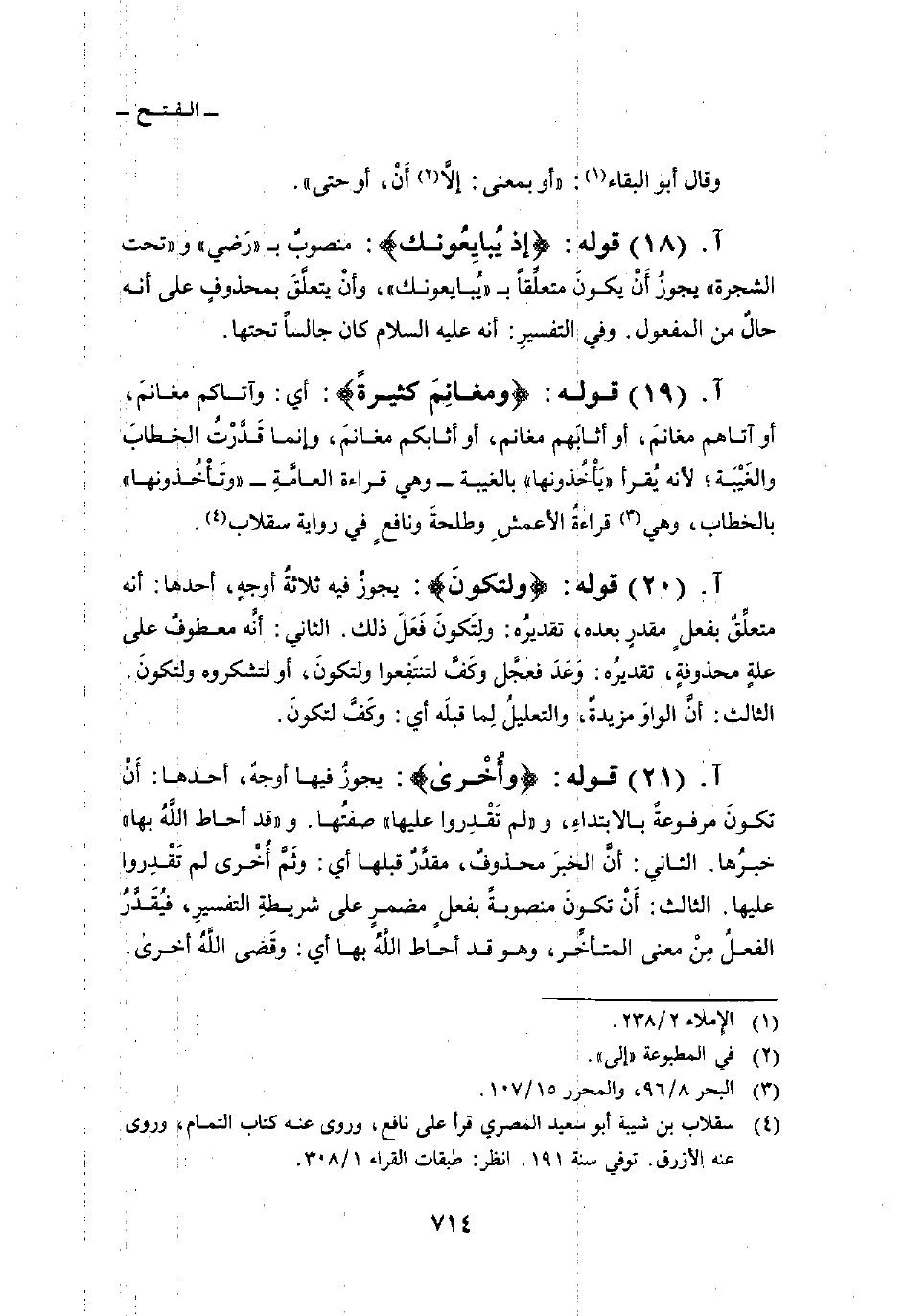 قوله: {وَلِتَكُونَ} : يجوزُ فيه ثلاثةُ أوجهٍ، أحدها: أنه متعلِّقٌ بفعلٍ مقدرٍ بعده، تقديرُه: ولِتَكونَ فَعَلَ ذلك. الثاني: أنَّه معطوفٌ على علةٍ محذوفةٍ، تقديرُه: وَعَدَ فعجَّل وكَفَّ لتنتَفِعوا ولتكونَ، أو لتشكروه ولتكونَ. الثالث: أنَّ الواوَ مزيدةٌ، والتعليلُ لِما قبلَه أي: وكَفَّ لتكونَ.