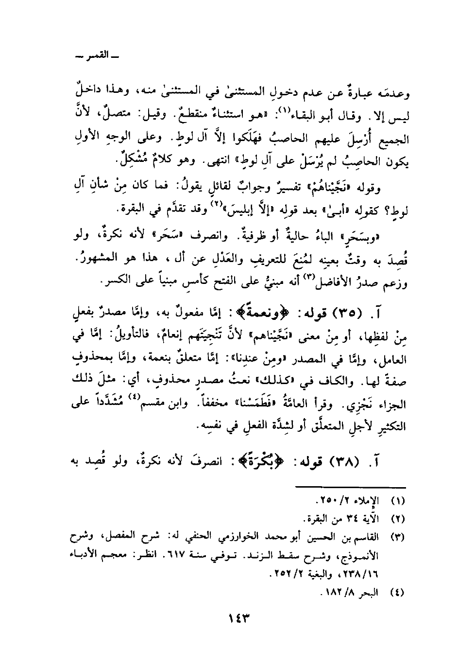 وقوله: {نَّجَّيْنَاهُم} تفسيرٌ وجوابٌ لقائلٍ يقولُ: فما كان مِنْ شأنِ آلِ لوطٍ؟ كقولِه «أبى» بعد قولِه {إِلاَّ إِبْلِيسَ} [البقرة: 34] وقد تقدَّم في البقرة.