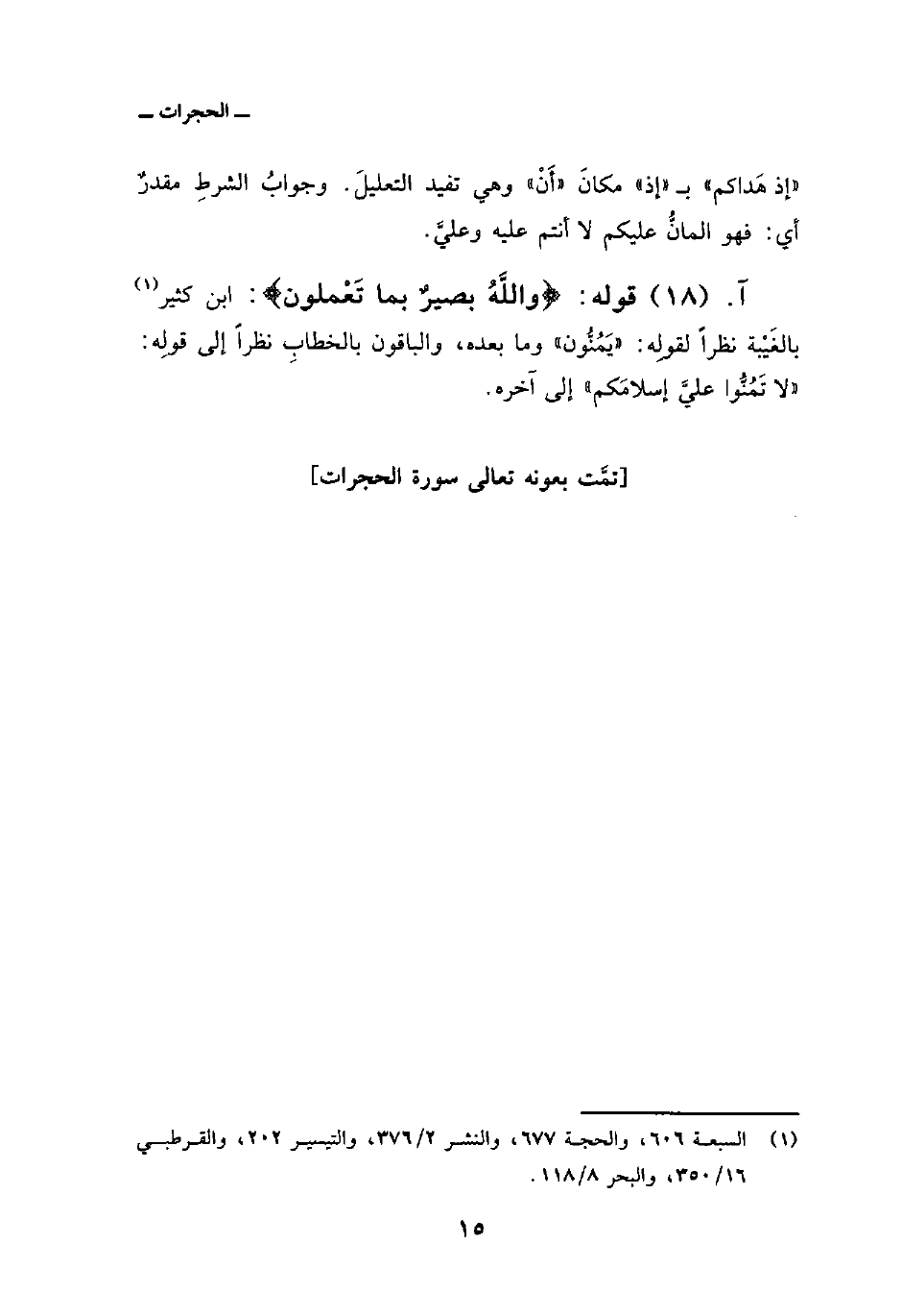 قوله: {والله بَصِيرٌ بِمَا تَعْمَلُونَ} : ابن كثير الغَيْبة نظراً لقولِه: «يَمُنُّون» وما بعده، والباقون بالخطابِ نظراً إلى قولِه: {لاَّ تَمُنُّواْ عَلَيَّ إِسْلاَمَكُمْ} إلى آخره.