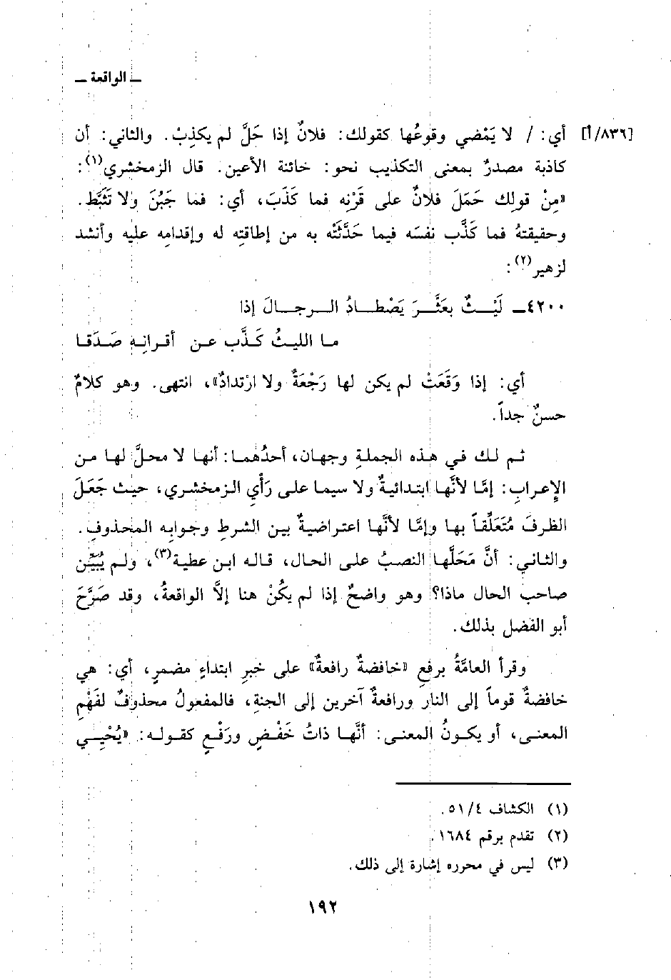 أي: / لا يَمْضي وقوعُها كقولك: فلانٌ إذا حَلَّ لم يكذِبْ. والثاني: أن كاذبة مصدرٌ بمعنى التكذيب نحو: خائنة الأعين. قال الزمخشري:» مِنْ قولِك حَمَلَ فلانٌ على قرْنِه فما كَذَبَ، أي: فما جَبُنَ ولا تَثَبَّط. وحقيقتهُ فما كَذَّب نفسَه فيما حَدَّثَتْه به من إطاقتِه له وإقدامهِ عليه وأنشد لزهير: