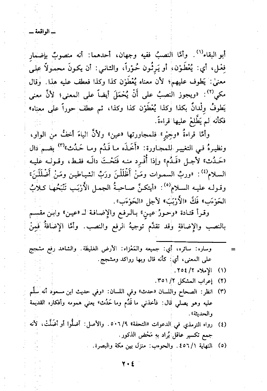 وأمَّا قراءةُ» وحِيْرٍ «فلمجاورتها» عين «ولأنَّ الياءَ أخفُّ من الواو، ونظيرهُ في التغيير للمجاورة:» أَخَذَه ما قَدُم وما حَدُث «بضم دال» حَدُث «لأجل» قَدُم «وإذا أُفْرِد منه فَتَحْتَ دالَه فقط، وقوله عليه السلام: