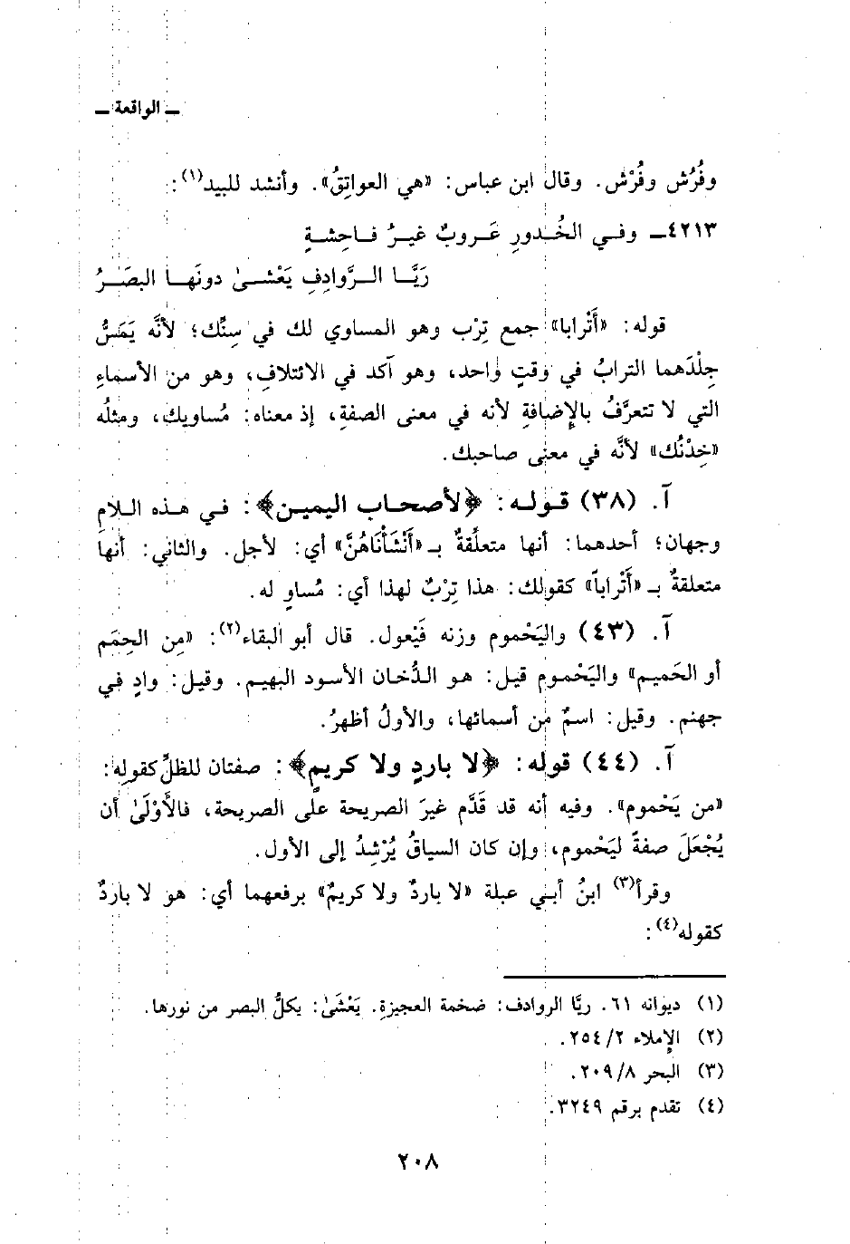 قوله: {أَتْرَاباً} جمع تِرْب وهو المساوي لك في سِنِّك؛ لأنَّه يَمَسُّ جِلْدَهما الترابُ في وقتٍ واحد، وهو آكد في الائتلافِ، وهو من الأسماءِ التي لا تتعرَّفُ بالإِضافةِ لأنه في معنى الصفةِ، إذ معناه: مُساويك، ومثلُه «خِدْنُك» لأنَّه في معنى صاحبك.