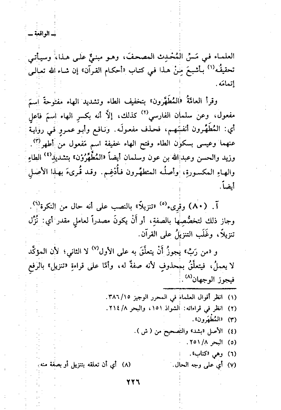 العلماء في مَسِّ المُحْدِث المصحفَ، وهو مبنيٌّ على هذا، وسيأتي تحقيقُه بأشبعَ مِنْ هذا في كتاب «أحكام القرآن» إن شاء الله تعالى إتمامَه.