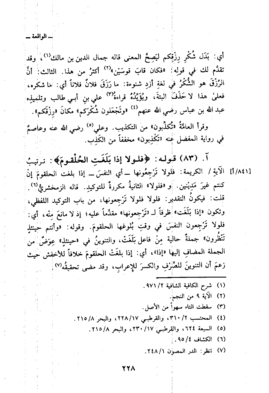 أي: بَدَل شُكْرِ رِزْقكم ليَصِحَّ المعنى قاله جمال الدين بن مالك، وقد تقدَّم لك في قولِه: {فَكَانَ قَابَ قَوْسَيْنِ} [النجم: 9] أكثرُ من هذا. الثالث: أنَّ الرِّزْقَ هو الشُّكْرُ في لغةِ أزدِ شنوءة: ما رَزَقَ فلانٌ فلاناً أي: ما شكره، فعلى هذا لا حَذْفَ البتةَ، ويُؤَيِّدُهُ قراءةُ علي بنِ أبي طالب وتلميذِه عبد الله بن عباس رضي الله عنهم «وتَجْعَلون شُكْرَكم» مكان «رِزْقَكم» .