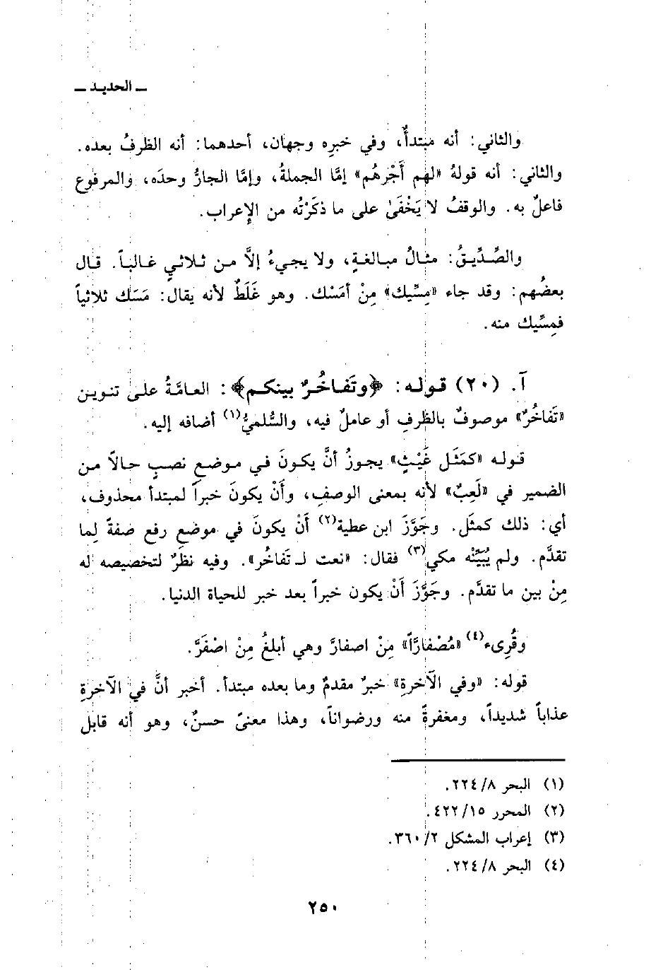 قوله: {وَتَفَاخُرٌ بَيْنَكُمْ} : العامَّةُ على تنوين «تَفاخُرٌ» موصوفٌ بالظرفِ أو عاملٌ فيه، والسُّلميُّ أضافه إليه.