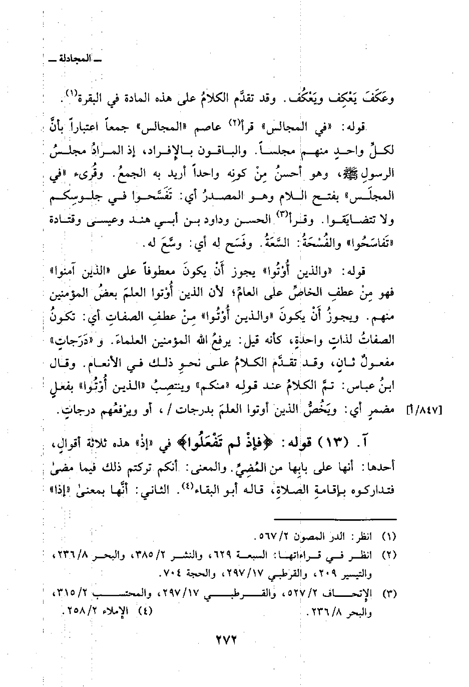 قوله: {فِي المجالس} قرأ عاصم «المجالس» جمعاً اعتباراً بأنَّ لكلِّ واحدٍ منهم مجلساً. والباقون بالإِفراد، إذ المرادُ مجلسُ الرسولِ صَلَّى اللهُ عَلَيْهِ وَسَلَّمَ، وهو أحسنُ مِنْ كونِه واحداً أريد به الجمعُ. وقُرىء «في المجلَس» بفتح اللام وهو المصدرُ أي: تَفَسَّحوا في جلوسِكم ولا تتضايَقوا. وقرأ الحسن وداود بن أبي هند وعيسى وقتادة «تَفاسَحُوا» والفُسْحَةُ: السَّعَةُ. وفَسَح له أي: وسَّعَ له.