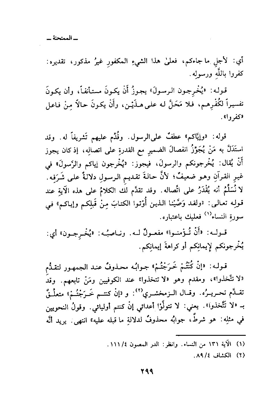 وقد استَدَلَّ به مَن يُجَوِّزُ انفصالَ الضميرِ مع القدرةِ على اتصالِه، إذ كان يجوز أَنْ يُقال: يُخْرجونكم والرسولَ، فيجوز: «يُخْرجون إياكم والرَّسولَ» في غيرِ القرآنِ وهو ضعيفٌ؛ لأنَّ حالةَ تقديمِ الرسولِ دلالةٌ على شَرَفِه. لا نُسَلِّمُ أنه يُقَدَرُ على اتِّصاله. وقد تقدَّم لك الكلامُ على هذه الآيةِ عند قولِه تعالى: {وَلَقَدْ وَصَّيْنَا الذين أُوتُواْ الكتاب مِن قَبْلِكُمْ وَإِيَّاكُمْ} في سورةِ النساء فعليك باعتباره.