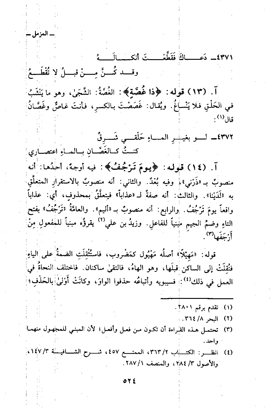 قوله: {أَنكَالاً} : جمعُ نِكْلٍ. وفيه قولان، أشهرُهما: أنه القَيْدُ. وقيل: الغُلُّ، والأولُ أَعْرَفُ. وقالت الخنساء: