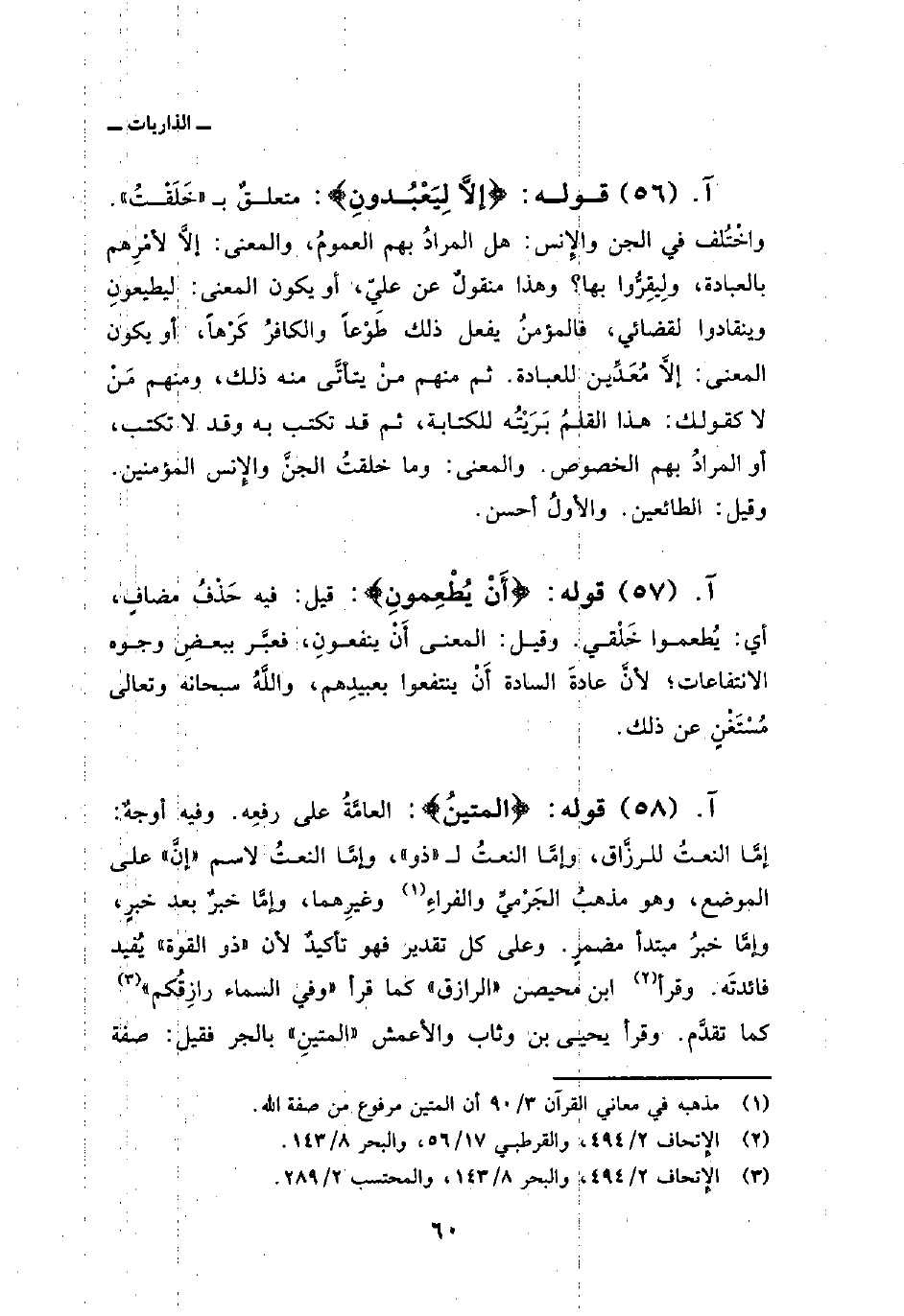 قوله: {المتين} : العامَّةُ على رفعِه. وفيه أوجهٌ: إمَّا النعتُ للرزَّاق، وإمَّا النعتُ ل «ذو» ، وإمَّا النعتُ لاسم «إنَّ» على الموضع، وهو مذهبُ الجَرْميِّ والفراءِ وغيرِهما، وإمَّا خبرٌ بعد خبرٍ، وإمَّا خبرُ مبتدأ مضمرٍ. وعلى كل تقدير فهو تأكيدٌ لأن «ذو القوة» يُفيد فائدتَه. وقرأ ابن محيصن «الرازق» كما قرأ «وَفِي السمآء رازِقُكُمْ» كما تقدَّم. وقرأ يحيى بن وثاب والأعمش «المتينِ» بالجر فقيل: صفة
