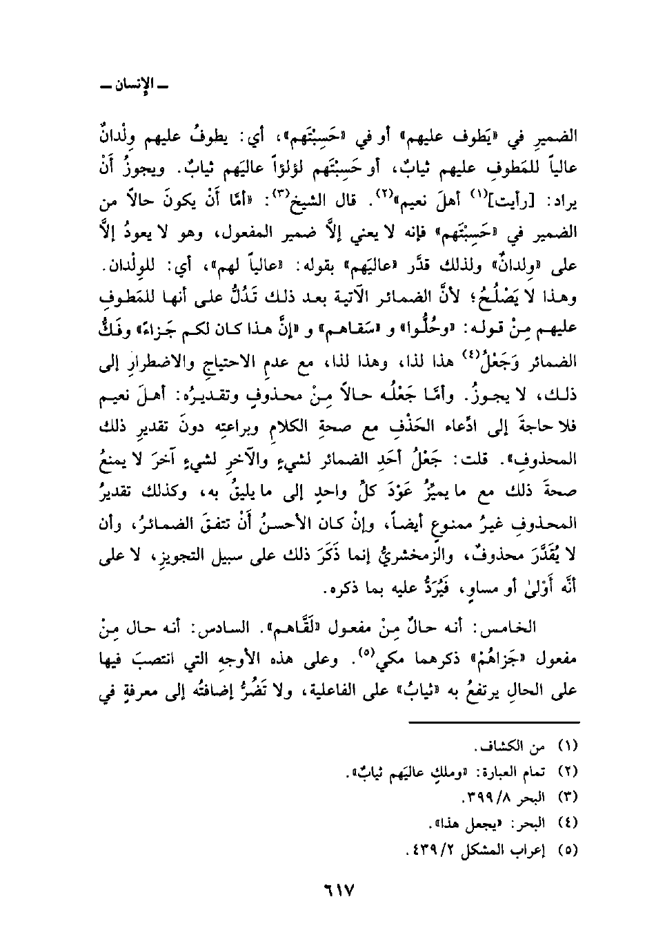 قلت: جَعْلُ أحَدِ الضمائر لشيءٍ والآخرِ لشيءٍ آخرَ لا يمنعُ صحةَ ذلك مع ما يميِّزُ عَوْدَ كلِّ واحدٍ إلى ما يليقُ به، وكذلك تقديرُ المحذوفِ غيرُ ممنوعٍ أيضاً، وإنْ كان الأحسنُ أَنْ تتفقَ الضمائرُ، وأن لا يُقَدَّرَ محذوفٌ، والزمخشريُّ إنما ذَكَرَ ذلك على سبيل التجويزِ، لا على أنَّه أَوْلى أو مساوٍ، فَيُرَدُّ عليه بما ذكره.