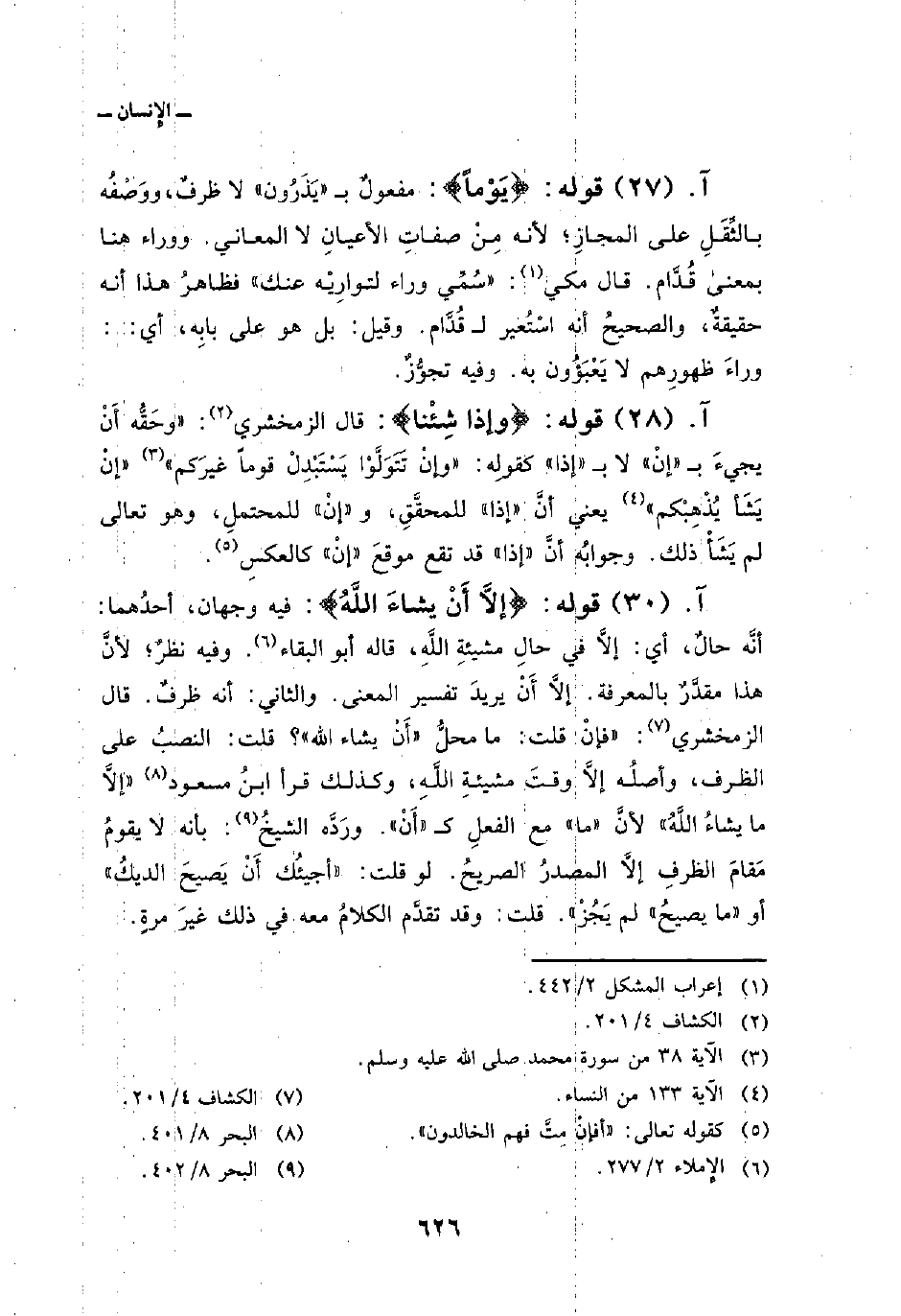 قوله: {إِلاَّ أَن يَشَآءَ الله} : فيه وجهان، أحدُهما: أنَّه حالٌ، أي: إلاَّ في حالِ مشيئِة اللَّهِ، قاله أبو البقاء. وفيه نظرٌ؛ لأنَّ هذا مقدَّرٌ بالمعرفة. إلاَّ أَنْ يريدَ تفسير المعنى. والثاني: أنه ظرفٌ. قال الزمخشري: «فإنْ قلت: ما محلُّ {أَن يَشَآءَ الله} ؟ قلت: النصبُ على الظرف، وأصلُه إلاَّ وقتَ مشيئةِ اللَّهِ، وكذلك قرأ ابنُ مسعود» إِلاَّ مَا يشَآءُ الله «لأنَّ» ما «مع الفعلِ ك» أَنْ «. ورَدَّه الشيخُ: بأنه لا يقومُ مَقامَ الظرفِ إلاَّ المصدرُ الصريحُ. لو قلت:» أجيئُك أَنْ يَصيحَ الديكُ «أو» ما يصيحُ «لم يَجُزْ» . قلت: وقد تقدَّم الكلامُ معه في ذلك غيرَ مرةٍ.