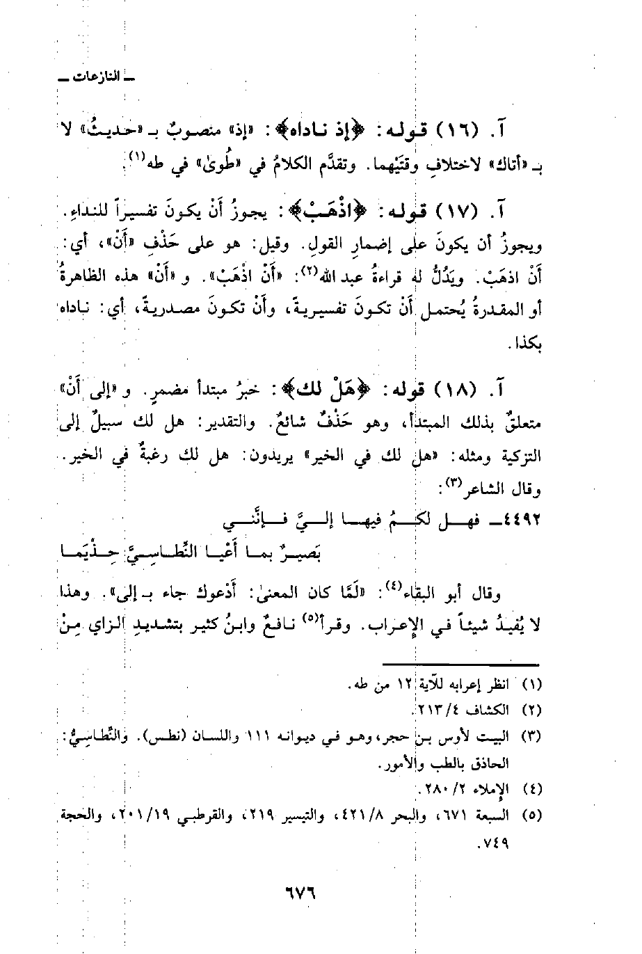 وقال أبو البقاء: «لَمَّا كان المعنى: أَدْعوك جاء ب» إلى «. وهذا لا يُفيدُ شيئاً في الإِعراب. وقرأ نافعٌ وابنُ كثير بتشديدِ الزاي مِنْ»