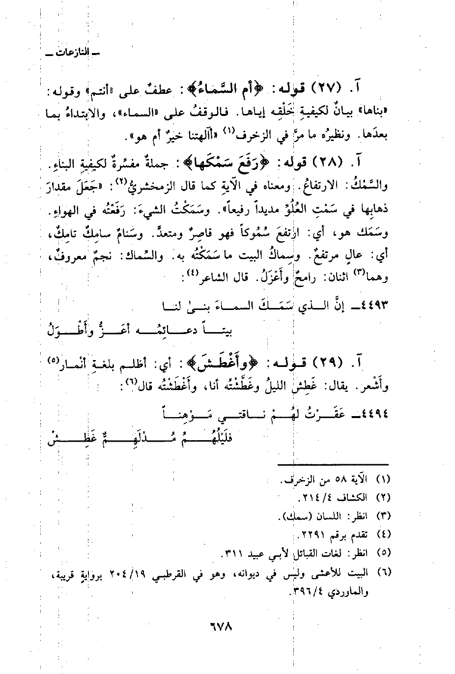 4493 - إنَّ الذي سَمَكَ السماءَ بنى لنا ... بيتاً دعائِمُه أعَزُّ وأَطْوَلُ