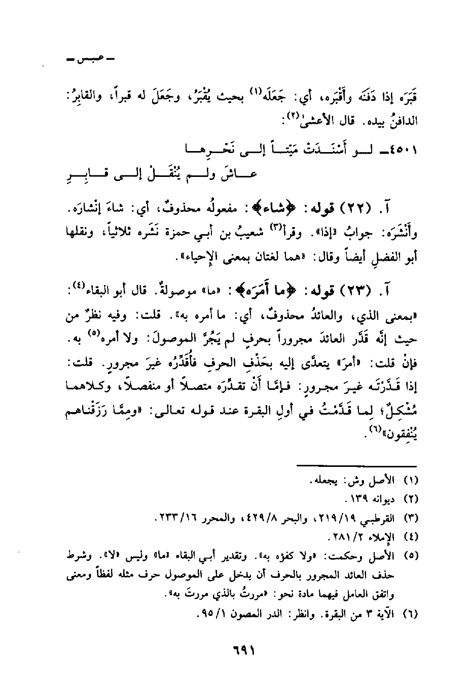 قوله: {مَآ أَمَرَهُ} : «ما» موصولةٌ. قال أبو البقاء: «بمعنى الذي، والعائدُ محذوفٌ، أي: ما أمره به» . قلت: وفيه نظرٌ من حيث إنَّه قَدَّر العائدَ مجروراً بحرفٍ لم يَجُرَّ الموصولَ: ولا أمره به. فإنْ قلت: «أمرَ» يتعدَّى إليه بحَذْفِ الحرفِ فأُقَدِّرُه غيرَ مجرورٍ. قلت: إذا قَدَّرْتَه غيرَ مجرورٍ: فإمَّا أَنْ تقدِّرَه متصلاً أو منفصلاً، وكلاهما مُشْكِلٌ؛ لِما قَدَّمْتُ في أولِ البقرة عند قوله تعالى: {وَممَّا رَزَقْنَاهُمْ يُنْفِقُونَ} [البقرة: 3] .