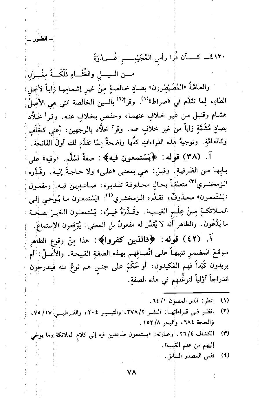 والعامَّةُ «المُصَيْطِرون» بصادٍ خالصةٍ مِنْ غيرِ إشمامِها زاياً لأجلِ الطاءِ، لِما تقدَّم في {صِرَاطَ} . وقرأ بالسين الخالصة التي هي الأصلُ هشام وقنبل من غير خلافٍ عنهما، وحفص بخلافٍ عنه. وقرأ خلاَّد بصادٍ مُشَمَّةٍ زاياً من غير خلافٍ عنه. وقرأ خلاَّد بالوجهين، أعني كخَلَفٍ وكالعامَّةِ. وتوجيهُ هذه القراءتِ كلِّها واضحةٌ مِمَّا تقدَّم لك أولَ الفاتحة.