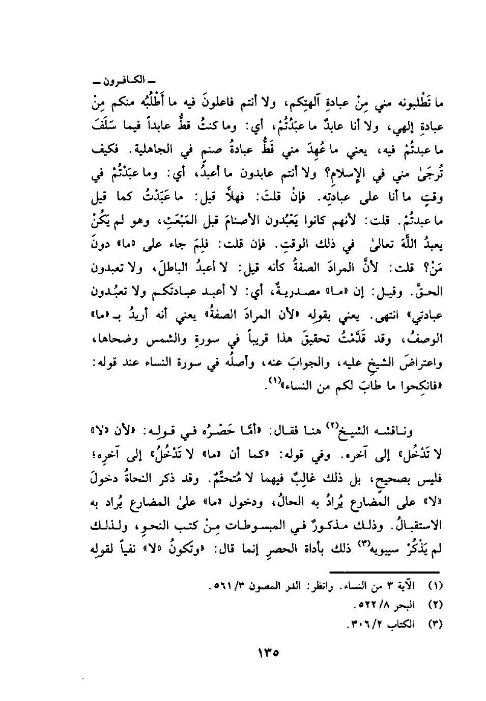 وناقشه الشيخ هنا فقال: «أمَّا حَصْرُه في قولِه:» لأن «لا» لا تَدْخُل «إلى آخره. وفي قوله:» كما أن «ما» لا تَدْخُلُ «إلى آخرِه؛ فليس بصحيحٍ، بل ذلك غالِبٌ فيها لا مُتحتِّمٌ.