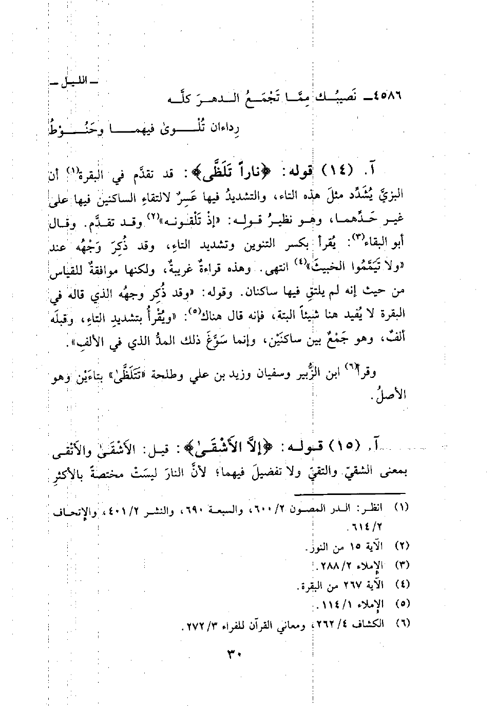 وقرأ ابن الزُّبير وسفيان وزيد بن علي وطلحة» تتلظى «بتاءَيْن وهو الأصلُ.
