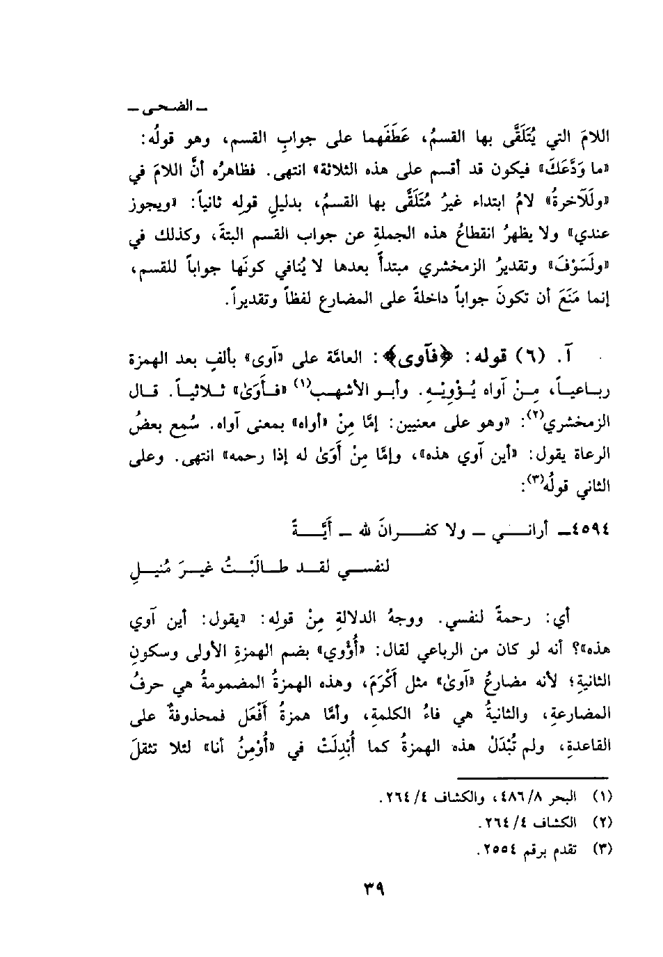 اللامَ التي يُتَلَقَّى بها القسمُ، عَطَفَها على جوابِ القسم، وهو قولُه: {مَا وَدَّعَكَ} فيكون قد أقسم على هذه الثلاثة» انتهى. فظاهرُه أنَّ اللامَ في «ولَلآخرةُ» لامُ ابتداء غيرُ مُتَلَقَّى بها القسمُ، بدليلِ قولِه ثانياً: «ويجوز عندي» ولا يظهرُ انقطاعُ هذه الجملةِ عن جواب القسم البتةَ، وكذلك في {ولَسَوْفَ} وتقديرُ الزمخشري مبتدأً بعدها لا يُنافي كونَها جواباً للقسم، وإنما مَنَعَ أن تكونَ جواباً داخلةً على المضارع لفظاً وتقديراً.