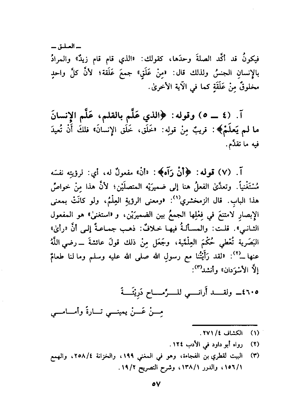 فيكونُ قد أكَّد الصلةَ وحدَها، كقولك: «الذي قام قام زيدٌ» والمرادُ بالإِنسانِ الجنسُ ولذلك قال: {مِنْ عَلَقٍ} جمعَ عَلَقة؛ لأنَّ كلَّ واحدٍ مخلوقٌ مِنْ عَلَقَةٍ كما في الآية الآخرى.