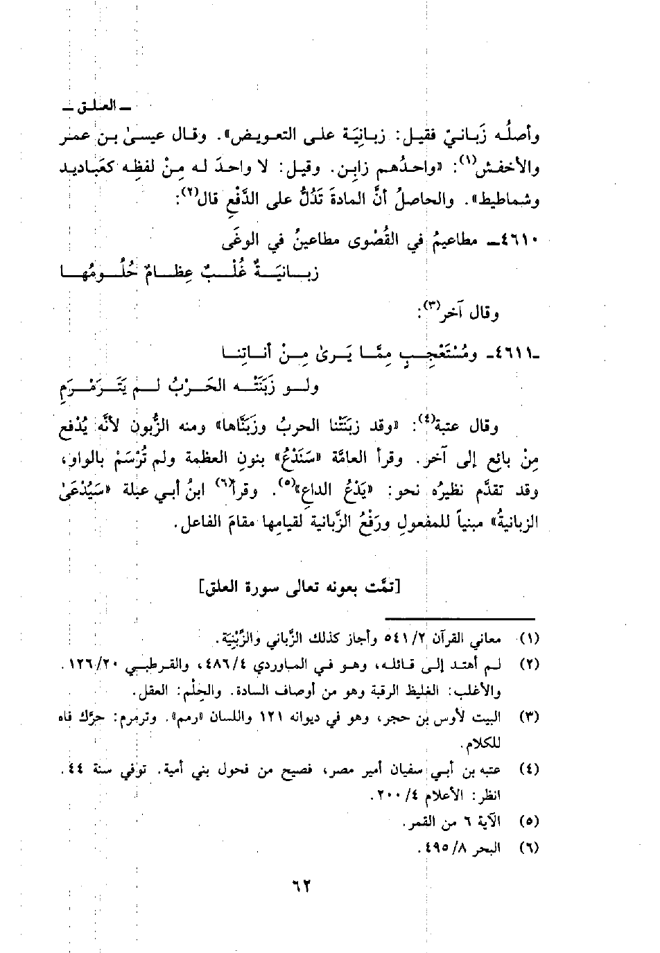 وقال عتبة: «وقد زبَنَتْنا الحربُ وزبَنَّاها» ومنه الزُّبون لأنَّه يُدْفع مِنْ بائعٍ إلى آخر. وقرأ العامَّة «سَنَدْعُ» بنونِ العظمة ولم تُرْسَمْ بالواو، وقد تقدَّم نظيرُه نحو: «يَدْعُ الداعِ» . وقرأ ابنُ أبي عبلة «سيدعى الزبانيةُ» مبنياً للمعفولِ ورَفْعُ الزَّبانية لقيامِها مقامَ الفاعل.