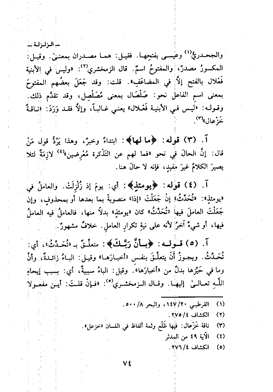 قوله: {يَوْمَئِذٍ} : أي: يومَ إذ زُلْزِلَتْ. والعاملُ في «يومئذٍ» «تُحَدِّثُ» إنْ جَعَلَتْ «إذا» منصوبةٌ بما بعدها أو بمحذوفٍ، وإن جَعَلْتَ العاملَ فيها «تُحَدِّثُ» كان «يومئذٍ» بدلاً منها، فالعاملُ فيه العاملُ فيها، أو شيءٌ آخرُ لأنه على نيةِ تكرارِ العاملِ. خلافٌ مشهورٌ.