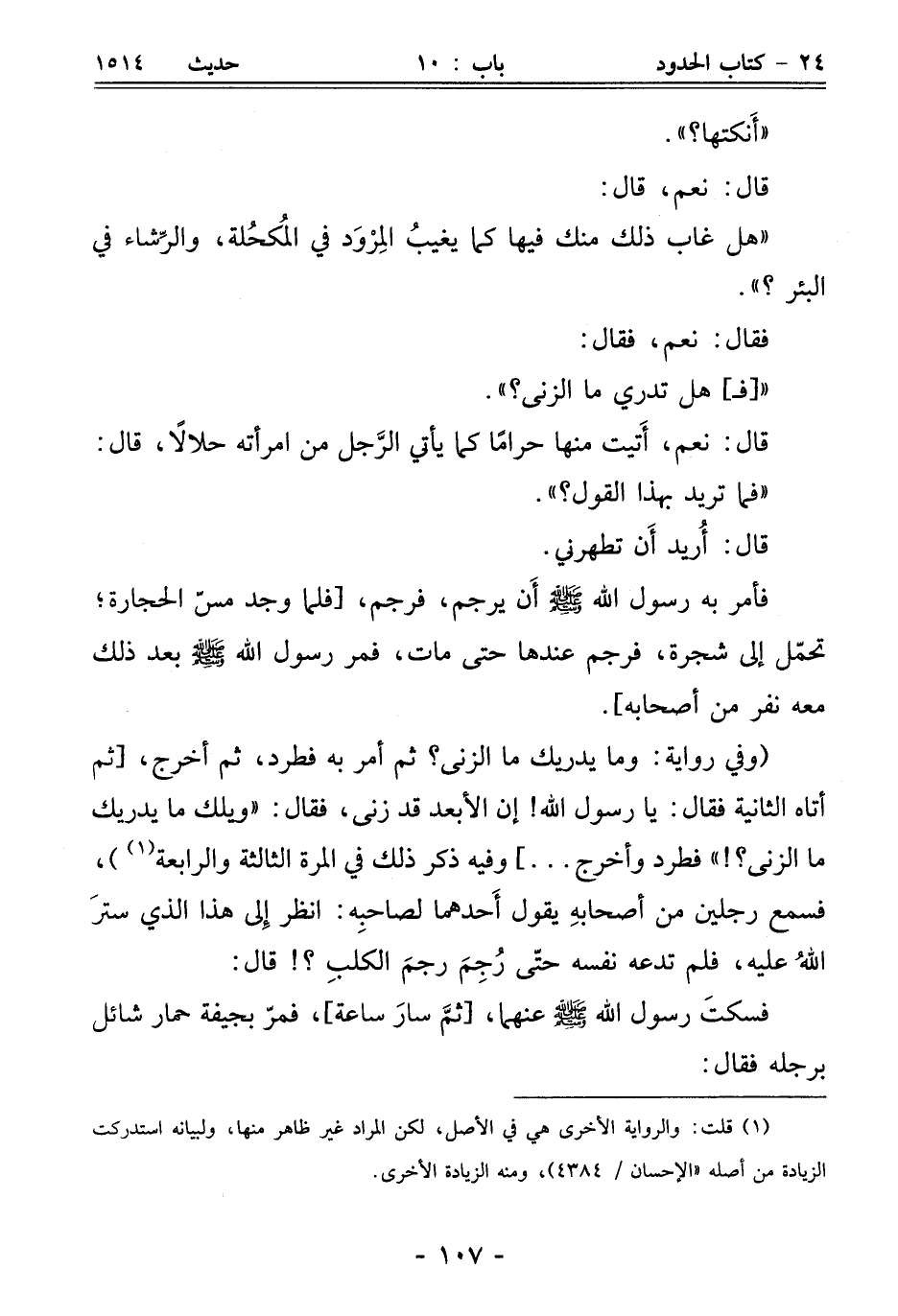 (¬1) قلت: والرواية الأخرى هي في الأصل، لكن المراد غير ظاهر منها، ولبيانه استدركت الزيادة من أصله (الإحسان/ 4384)، ومنه الزيادة الأخرى.