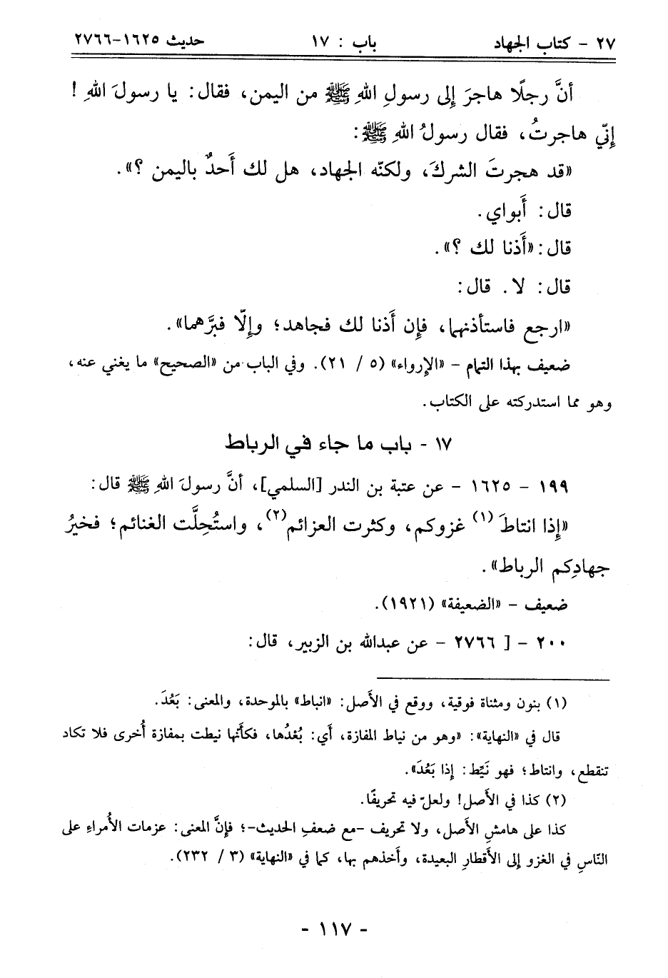 "قد هجرتَ الشركَ، ولكنّه الجهاد، هل لك أَحدٌ باليمن؟ ".