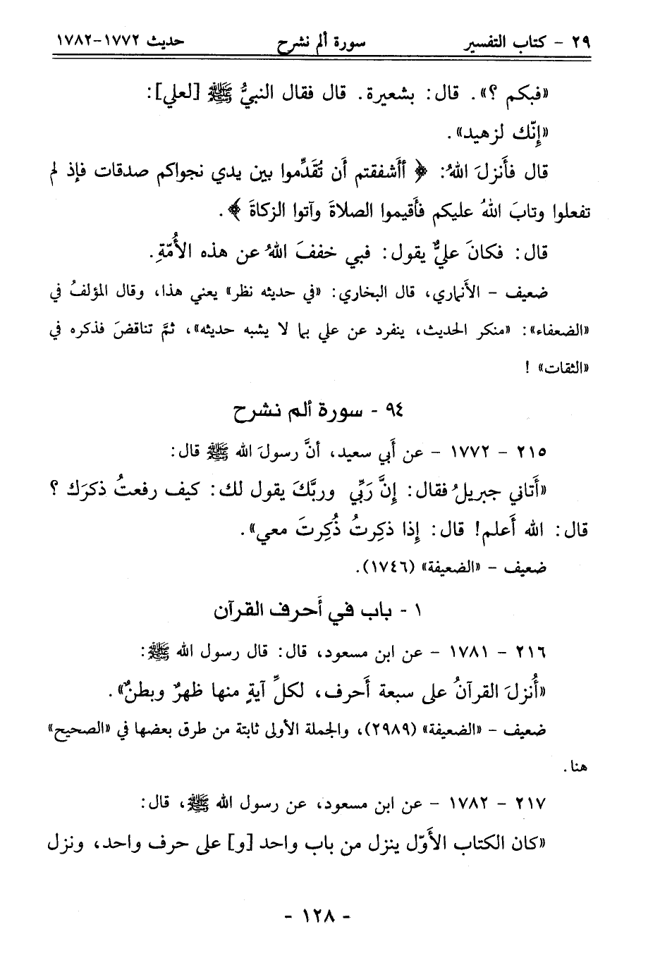 217 - 1782 - عن ابن مسعود، عن رسول الله - صلى الله عليه وسلم -، قال: