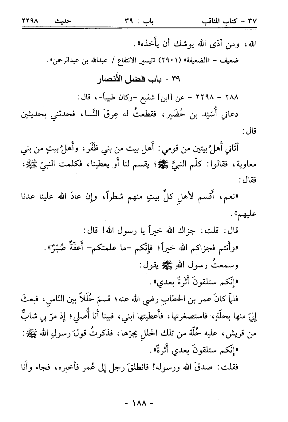 288 - 2298 - عن [ابن] شفيع - وكان طبيبًا -، قال: