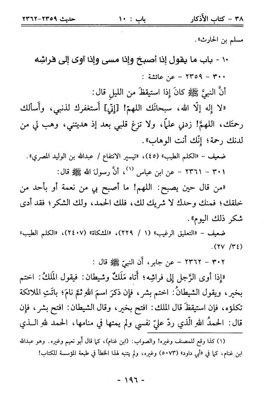 10 - باب ما يقول إِذا أصبحَ وإذا مسى وإذا آوى إِلى فراشِه