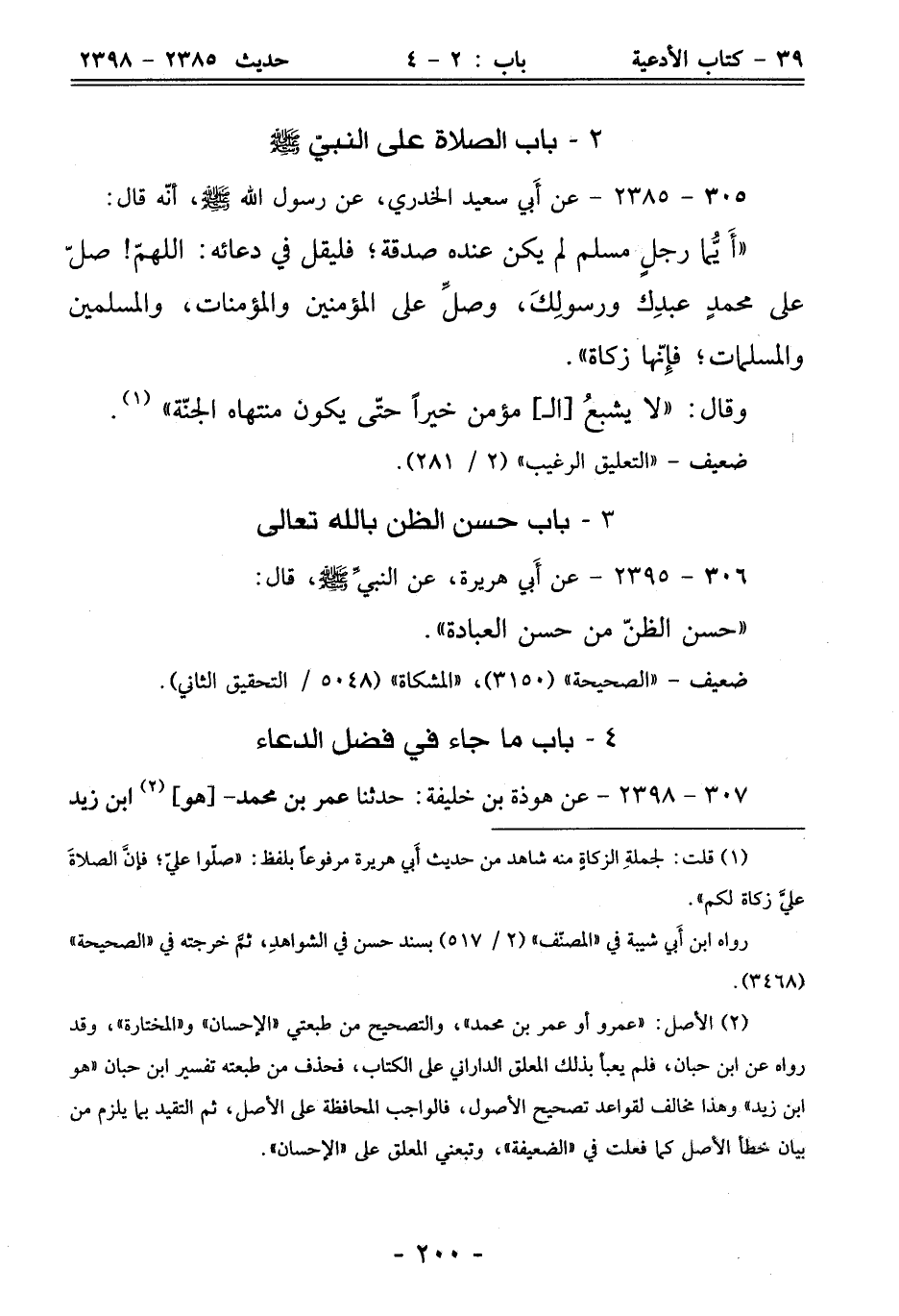 (¬2) الأصل: "عمرو أو عمر بن محمد"، والتصحيح من طبعتي "الإحسان" و"المختارة"، وقد رواه عن ابن حبان، فلم يعبأ بذلك المعلق الداراني على الكتاب، فحذف من طبعته تفسير ابن حبان "هو ابن زيد" وهذا مخالف لقواعد تصحيح الأصول، فالواجب المحافظة على الأصل، ثم التقيد بما يلزم من بيان خطأ الأصل كما فعلت في "الضعيفة"، وتبعني المعلق على "الإحسان".
