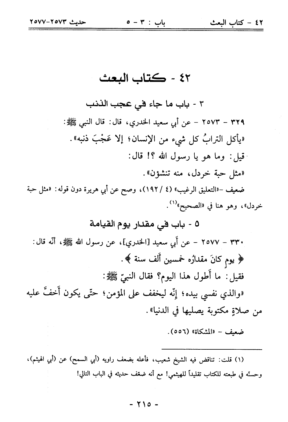 "يأكل الترابُ كل شيء من الإنسان؛ إلا عَجْبَ ذنبه".