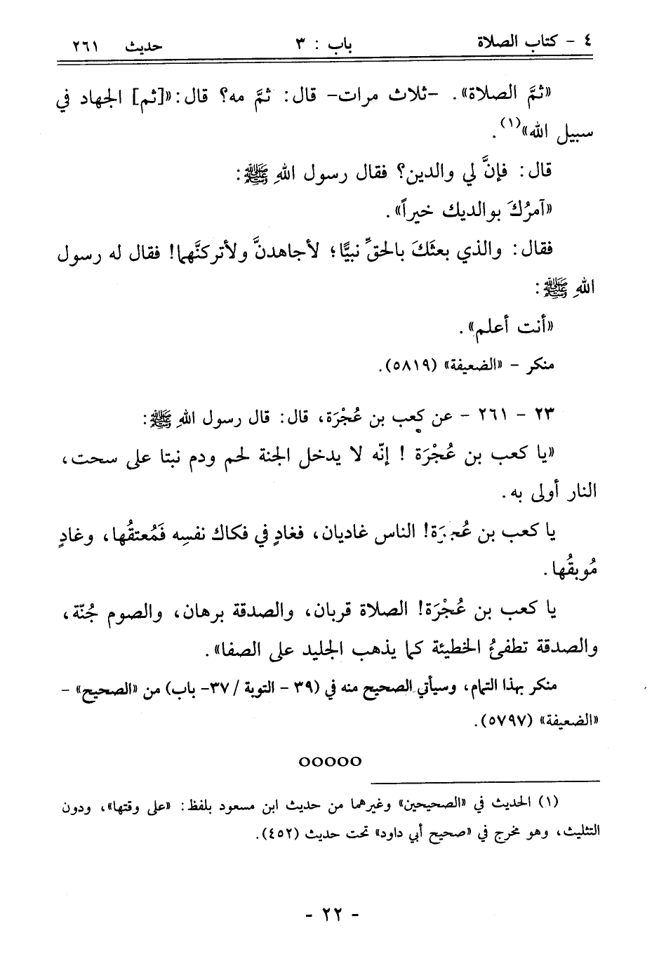 23 - 261 - عن كعب بن عُجْرَة، قال: قال رسول اللهِ - صلى الله عليه وسلم -: