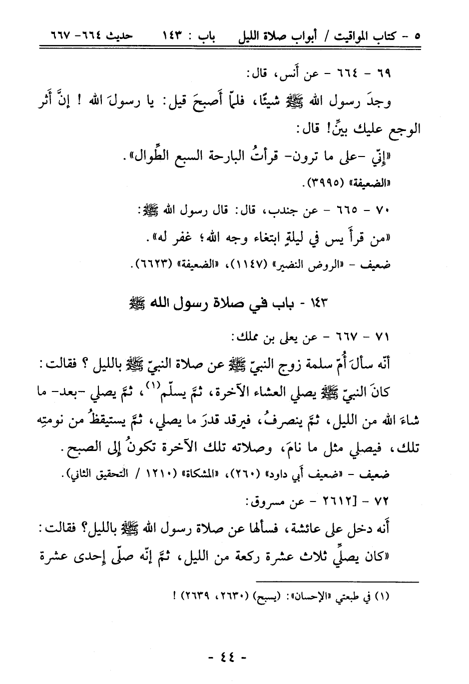 143 - باب في صلاة رسول الله - صلى الله عليه وسلم -