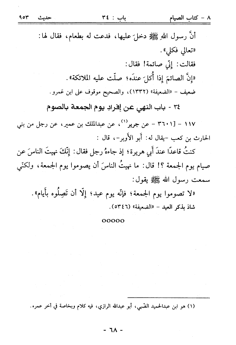34 - باب النهي عن إِفرادِ يوم الجمعة بالصوم