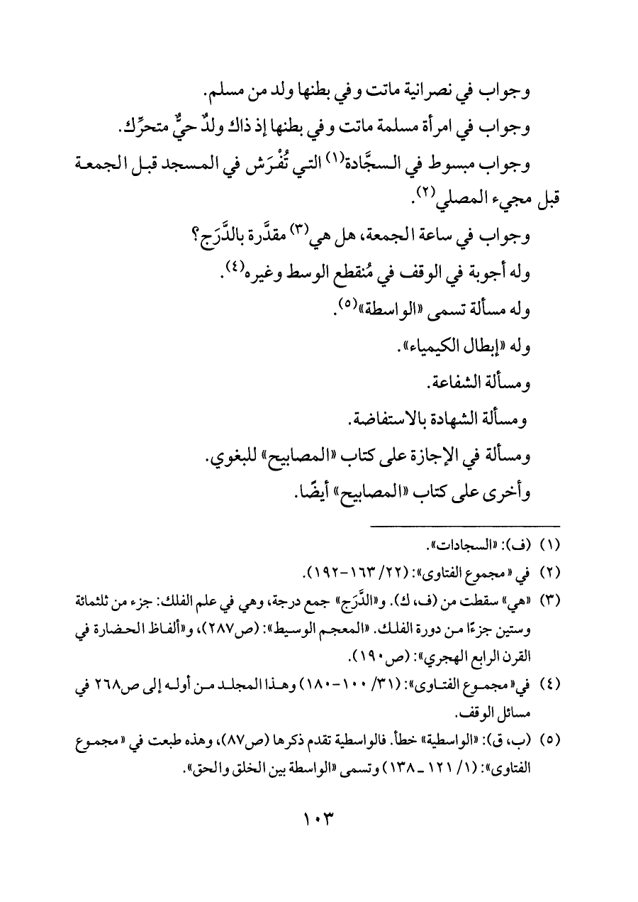(¬٤) في «مجموع الفتاوى»: (٣١/ ١٠٠ - ١٨٠) وهذا المجلد من أوله إلى ص ٢٦٨ في مسائل الوقف.