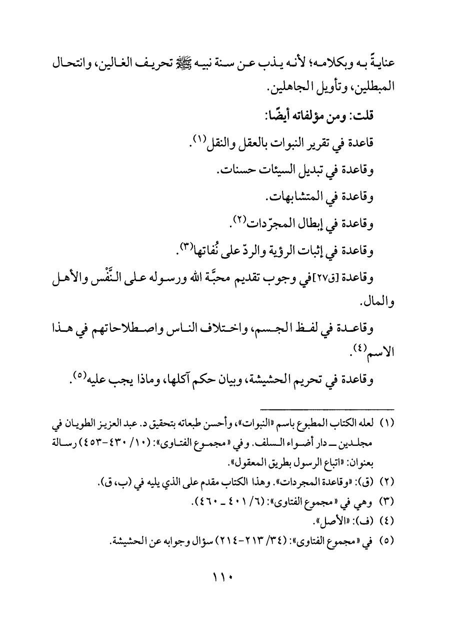 (¬٥) في «مجموع الفتاوى»: (٣٤/ ٢١٣ - ٢١٤) سؤال وجوابه عن الحشيشة.