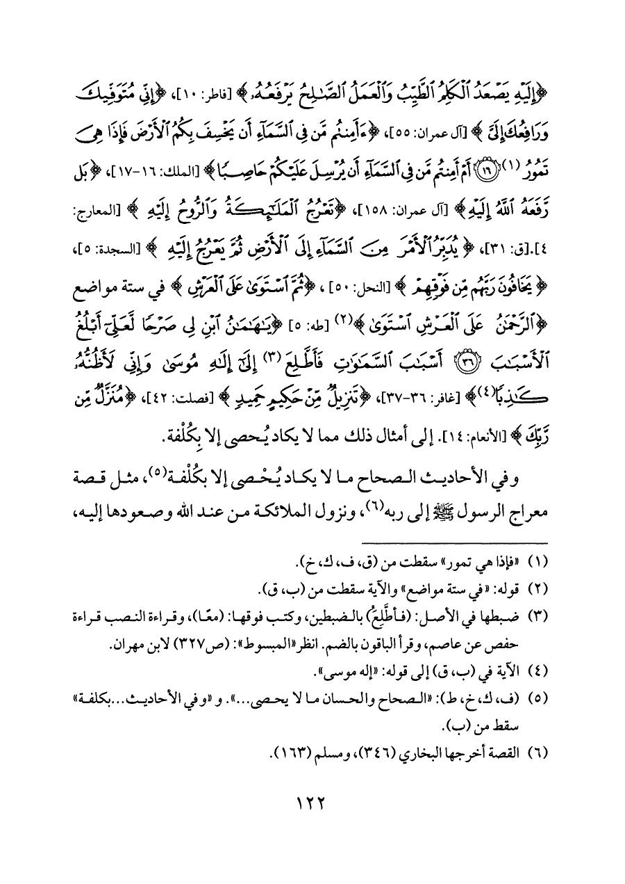 وفي الأحاديث الصحاح ما لا يكاد يُحْصى إلا بكُلْفة (¬٥)، مثل قصة معراج الرسول - صلى الله عليه وسلم - إلى ربه (¬٦)، ونزول الملائكة من عند الله وصعودها إليه،
