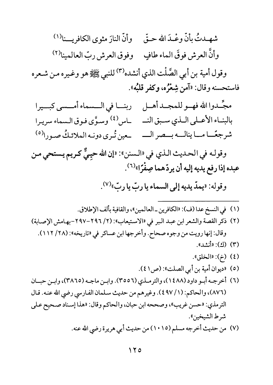 وقول أمية بن أبي الصَّلْت الذي أنشده (¬٣) للنبي - صلى الله عليه وسلم - هو وغيره من شعره فاستحسنه وقال: «آمن شِعْرُه، وكفر قلبُه».