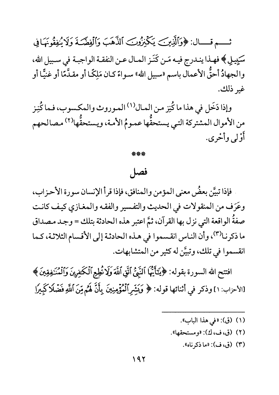 فإذا تبيَّن بعضُ معنى المؤمن والمنافق، فإذا قرأ الإنسان سورة الأحزاب، وعَرَف من المنقولات في الحديث والتفسير والفقه والمغازي كيف كانت صفةُ الواقعة التي نزل بها القرآن، ثمَّ اعتبر هذه الحادثة بتلك = وجد مصداق ما ذكرنا (¬٣)، وأن الناس انقسموا في هذه الحادثة إلى الأقسام الثلاثة، كما انقسموا في تلك، وتبيَّن له كثير من المتشابهات.