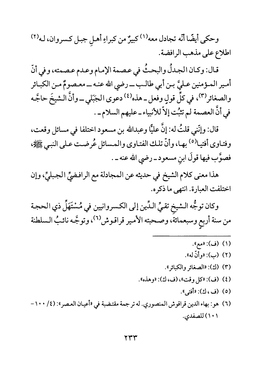 وحكى أيضًا أنّه تجادل معه (¬١) كبيرٌ من كبراءِ أهلِ جبل كسروان، له (¬٢) اطلاع على مذهب الرافضة.
