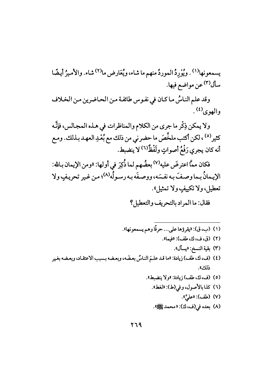 يسمعونها (¬١). ويُوْرِدُ الموردُ منهم ما شاء، ويُعَارض ما (¬٢) شاء. والأميرُ أيضًا سأل (¬٣) عن مواضع فيها.