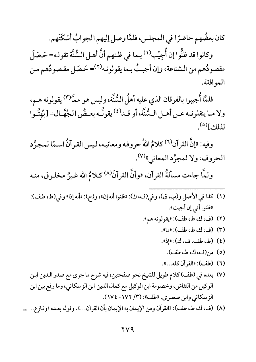 (¬٨) (ف، ك، ط، طف): «القرآن ومن الإيمان به الإيمان بأن القرآن ... ». وقوله بعده «ونازع .. يعود» سقطت من (ف).