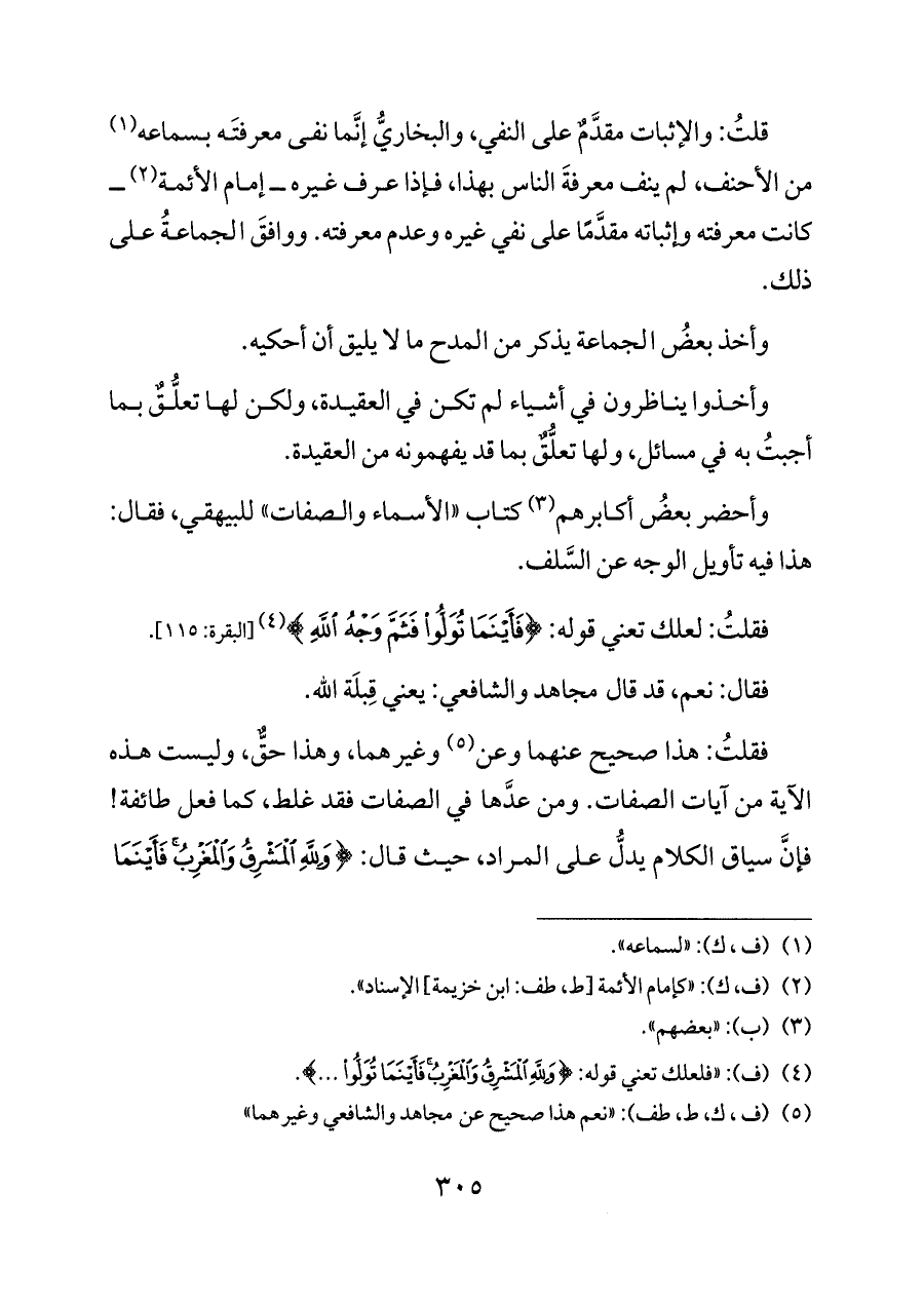 فقلتُ: هذا صحيح عنهما وعن (¬٥) وغيرهما، وهذا حقٌّ، وليست هذه الآية من آيات الصفات. ومن عدَّها في الصفات فقد غلط، كما فعل طائفة! فإنَّ سياق الكلام يدلُّ على المراد، حيث قال: {وَلِلَّهِ الْمَشْرِقُ وَالْمَغْرِبُ فَأَيْنَمَا