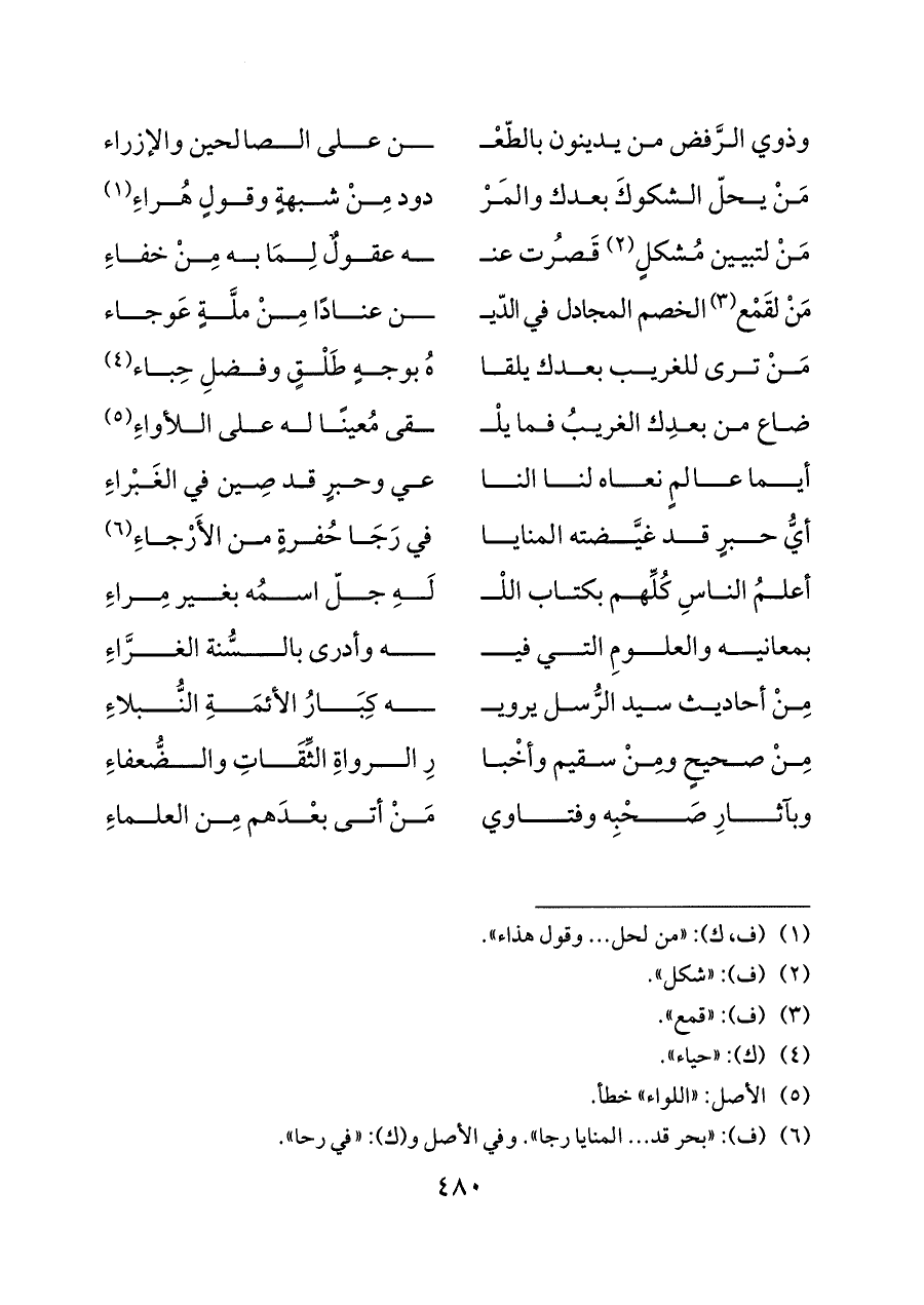 مِنْ صحيحٍ ومِنْ سقيم وأخْبا ... رِ الرواةِ الثِّقَاتِ والضُّعفاء