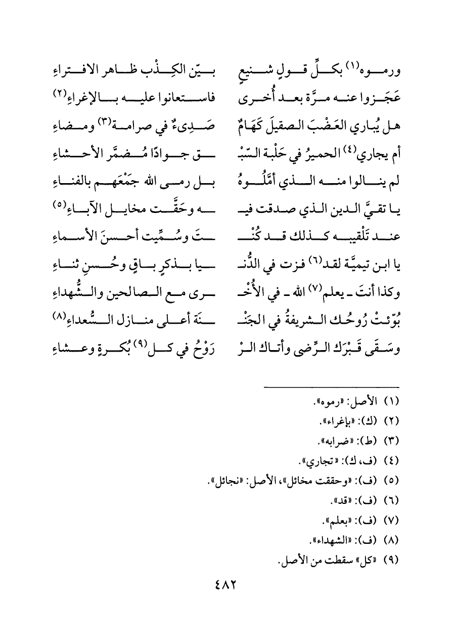 يا ابن تيميَّة لقد (¬٦) فزت في الدُّنـ ... ـيا بذكرٍ باقٍ وحُسنِ ثناء